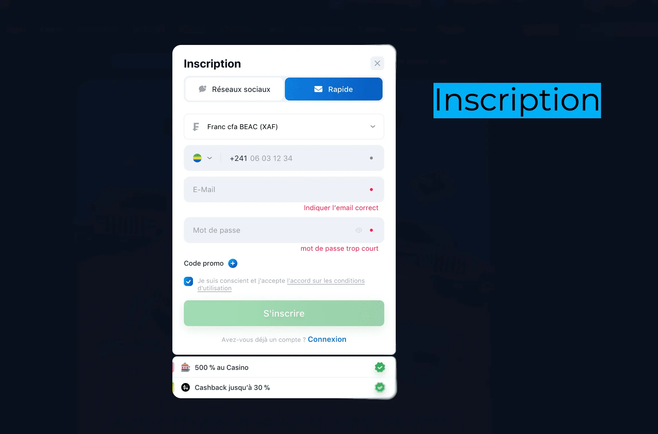 Faire partie de la communauté des joueurs n'a jamais été aussi simple qu'avec 1win. En quelques minutes seulement, vous pourrez vous inscrire sur le site, créer un compte et bientôt vous pourrez profiter de votre processeur de jeu. Quel que soit le Gabon, que vous préfériez les paris sportifs ou que vous préfériez l'ambiance d'un casino en ligne, vous trouverez toujours quelque chose d'intéressant ici. L'atmosphère de notre plateforme de jeu est tout simplement passionnante. L'inscription sur le site sera votre premier pas vers des gains sans fin et un passe-temps passionnant.